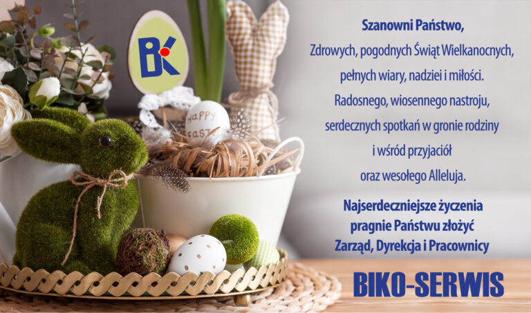 Szanowni Państwo, Niech te Święta Wielkanocne będą pełne uśmiechu, radości i miłości rodzinnej. Oby przyniosły zdrowie, szczęście i wspólne chwile pełne ciepła. Wesołej Wielkanocy życzy Zarząd, Dyrekcja oraz pracownicy Biko-Serwis.