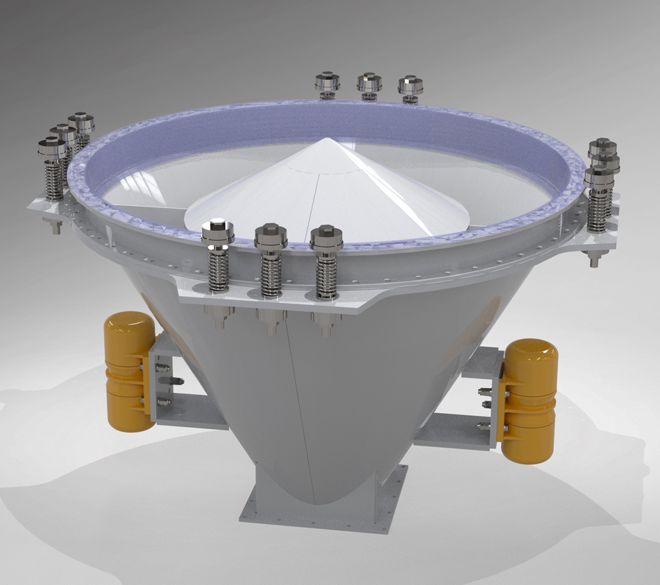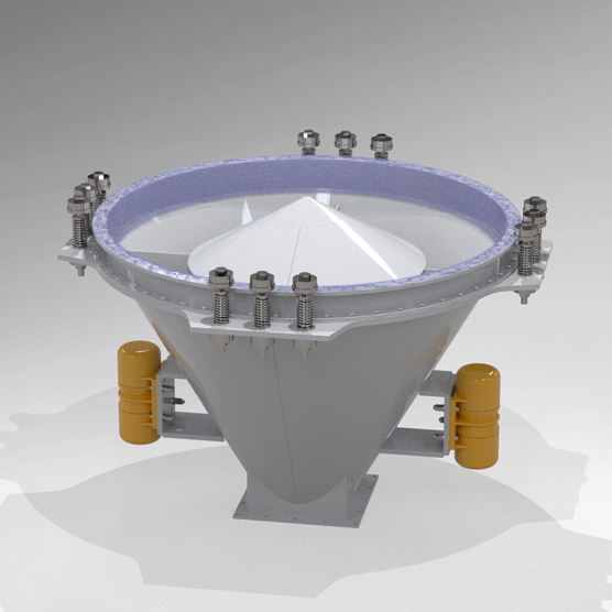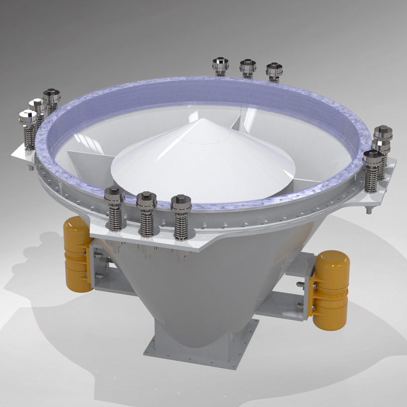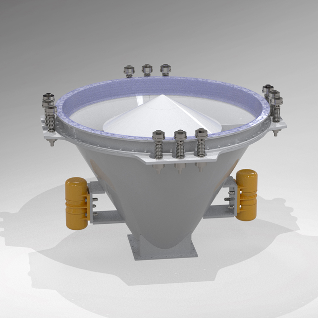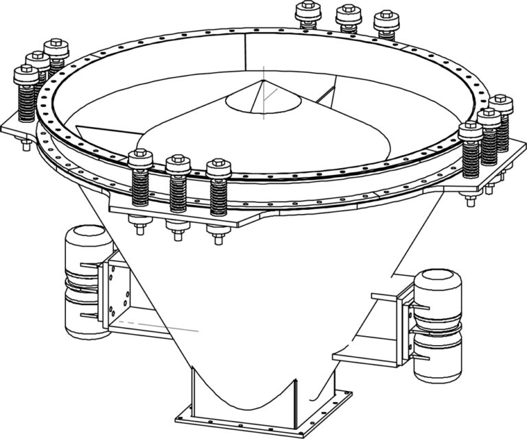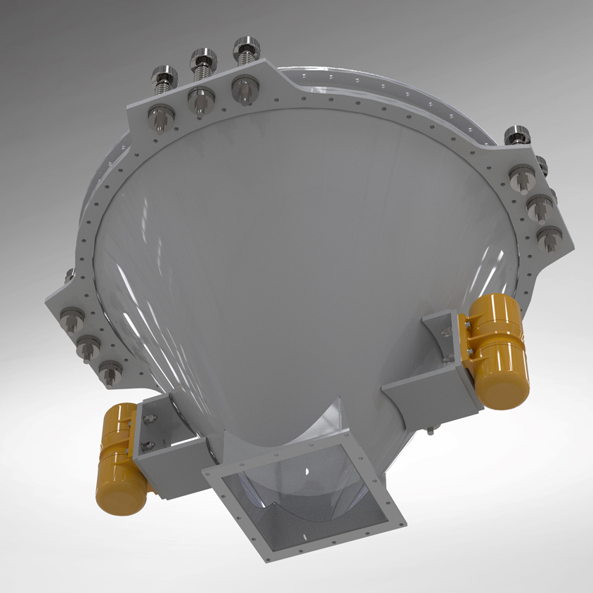 Dna wibracyjne produkcji Biko Tech to urządzenia o kształcie na wpół wypukłe, na wpół stożkowe. Wprowadzone w stan wibracji, ułatwiają opróznianie i przepływ materiału z opróznianych koszy i zbiorników transportowych lub silosów magazynowych. Dna wibracyjne służą do konkretnych zastosowań, szczególnie w przemyśle spożywczym (zwłaszcza w zakresie przemiału), oraz do ułatwiania wyładunku materiału w formie proszku lub granulek. Zastosowanie tego urządzenia zapewnia optymalne opróznianie zbiornika magazynowego, stwarzając sytuację “masowego natężenia przepływu” wewnątrz silosu, tym samym unikając zjawiska stężania i blokowania wysypu materiału. Lej poprzez swoją wibrację zmienia tarcie spoczynkowe cząstek materiału pomiędzy sobą i pomiędzy stożkiem dna wibracyjnego na dużo mniejsze i bardziej posuwiste. W zdecydowanej większości przypadków wystarcza to na realizację laminarnego wypływu materiału z silosu i umożliwienie jego rozładunku.