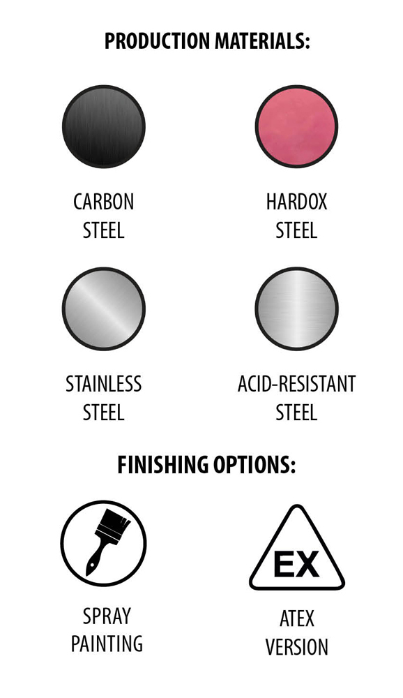 The quiet operation of the device is also a huge advantage. Our team of engineers made sure that the mill was not only efficient, but also easy to operate and maintain. Thanks to the intuitive interface and available maintenance tools, keeping your mill in perfect condition is simple and quick. Replacing the hammers and screens used in the mills is very efficient, thanks to which the hammer mills can operate almost without technological interruptions. Another undoubted advantage of the mills is the low level of vibration of the device, which ensures comfort during operation. Our priority is to ensure safe work for your employees. Our hammer mill is equipped with advanced security and emergency stop systems that minimize the risk of accidents and disruptions at work.