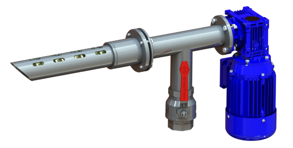Wśród naszych produktów ze stali nierdzewnych prezentujemy automatyczny pobieracz próbek. Urządzenie to służy do pobierania próbek z całego (lub części) przekroju strugi materiału sypkiego przepływającej ruchem ciągłym, którego uziarnienie nie przekracza 3mm. Próbobiornik może być instalowany na wylotach zasobników, zbiorników, silosów, podajników mechanicznych, pod urządzeniami odpylającymi suchymi oraz wszędzie tam, gdzie gazy i pył nie są agresywne a temperatura ich nie przekracza 60º C. Próbobiornik zbudowany jest z elementów wskazanych na rysunku 2, posiada możliwość bezstopniowej regulacji kąta względem osi wału oraz regulacji głębokości części pobierającej próbę w zakresie do 100 mm.