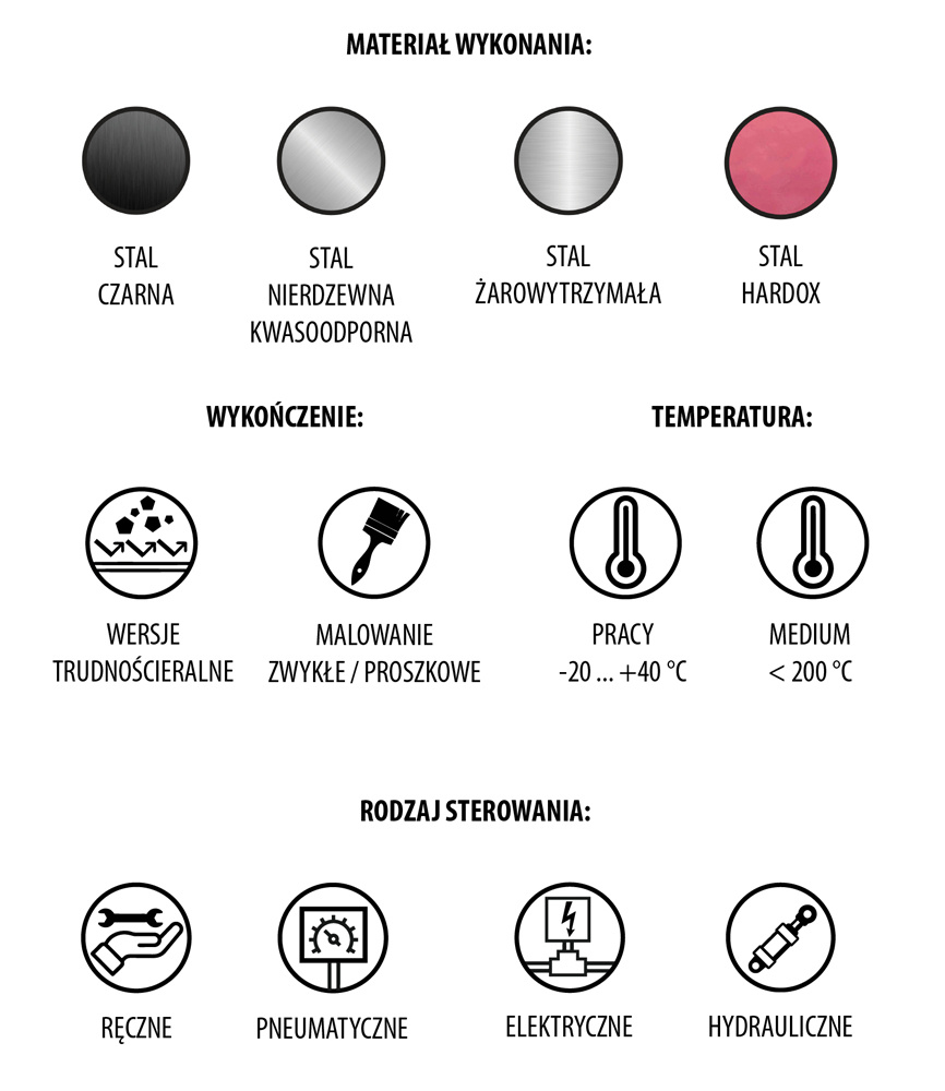 W przypadku urządzeń wykonanych ze stali nierdzewnej, żarodopornej i stali hardox listwa uszczelniająca wykonana jest z teflonu, co gwarantuje niezawodną pracę urządzenia w zakresie temperatur medium od -60 do +200°C.