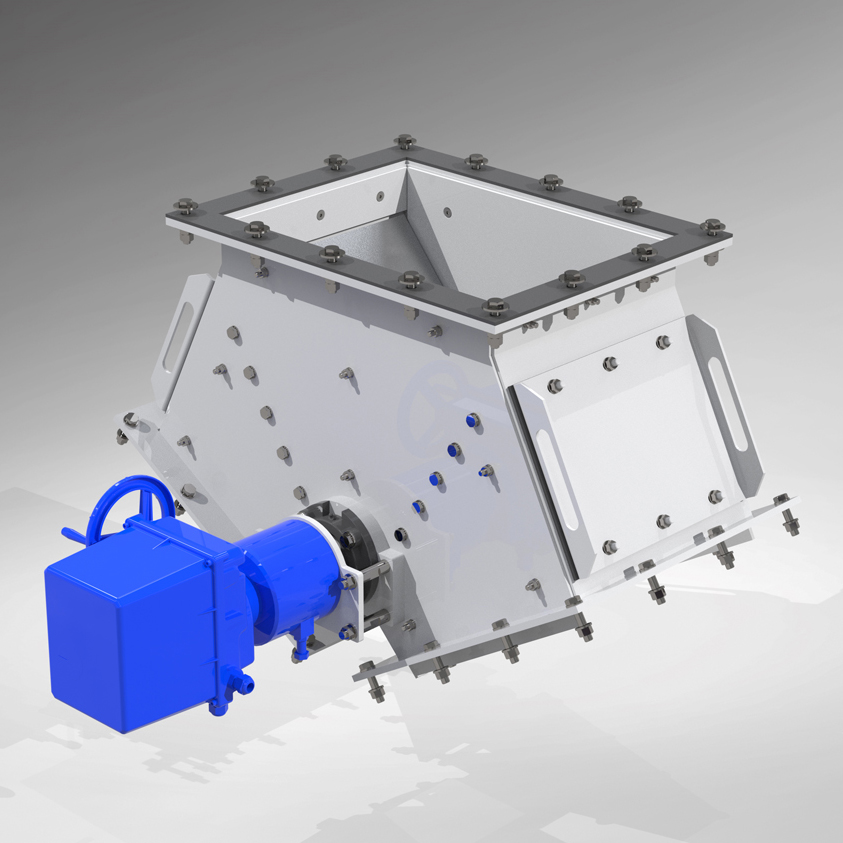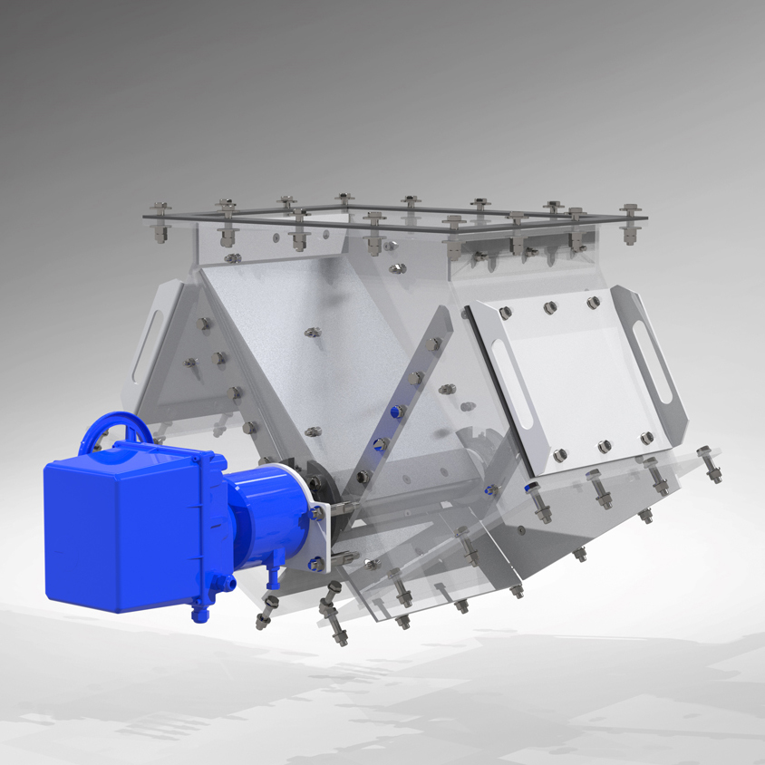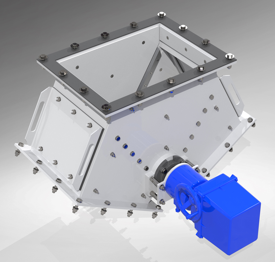 Tak zwany „szybki napęd” znajduje zastosowanie np.: w systemach detekcji i usuwania metali ze strugi produktu. Innym wykonaniem specjalnym jest wyposażenie przesypu w napęd z pozycjonerem. Pozycjoner zamontowany na napędzie obrotowym, pozwala zatrzymać klapę przesypu w dowolnym położeniu pośrednim.