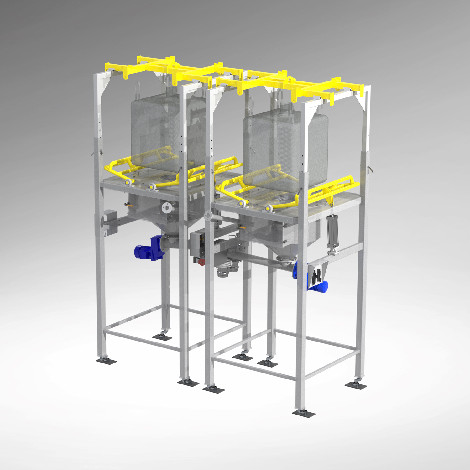 Stacje załadunku i rozładunku BIG-BAG znajdują one zastosowanie w wielu grupach i sektorach przemysłu oraz budownictwa. Są używane do bezpyłowego przeładunku, w automatycznym, zamkniętym obiegu materiałów sypkich i granulowanych. Stacje mogą służyć zarówno rozładunkowi, jak i załadunkowi surowców sypkich, granulowanych i drobno kawałkowych przy minimalnym zaangażowaniu personelu zakładu produkcyjnego.  W przypadku gdy proces załadunku / rozładunku nie jest zautomatyzowany, zajmuje on wiele czasu i wymaga zaangażowania wielu pracowników.  Stacje konfigurujemy zgodnie z wymaganiami Klientów, właściwościami i cechami magazynowymi produktu oraz warunkami otoczenia.