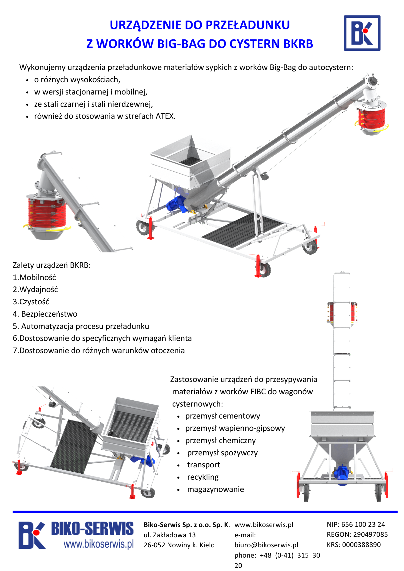 Przeładunek materiałów sypkich z worków Big-Bag do wagonów cysternowych to istotny proces w przemyśle cementowym, wapienno-gipsowym, chemicznym, spożywczym, a także w firmach zajmujących się transportem, recyklingiem czy magazynowaniem. Dzięki naszym urządzeniom do przeładunku BKRB można ten proces znacznie ułatwić i przyspieszyć.